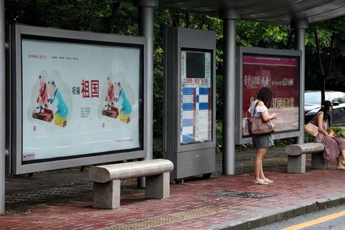 上海公交站牌遭小广告袭击