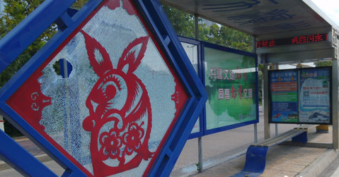 8月14日 ,有市民向本网站反映称,发现黄河路与渤海路之间的区教育局公交候车亭两块钢化玻璃遭人破坏,其中一块出现了直径约20公分的大洞,另一块则被打得粉碎,只剩下四角的玻璃。...